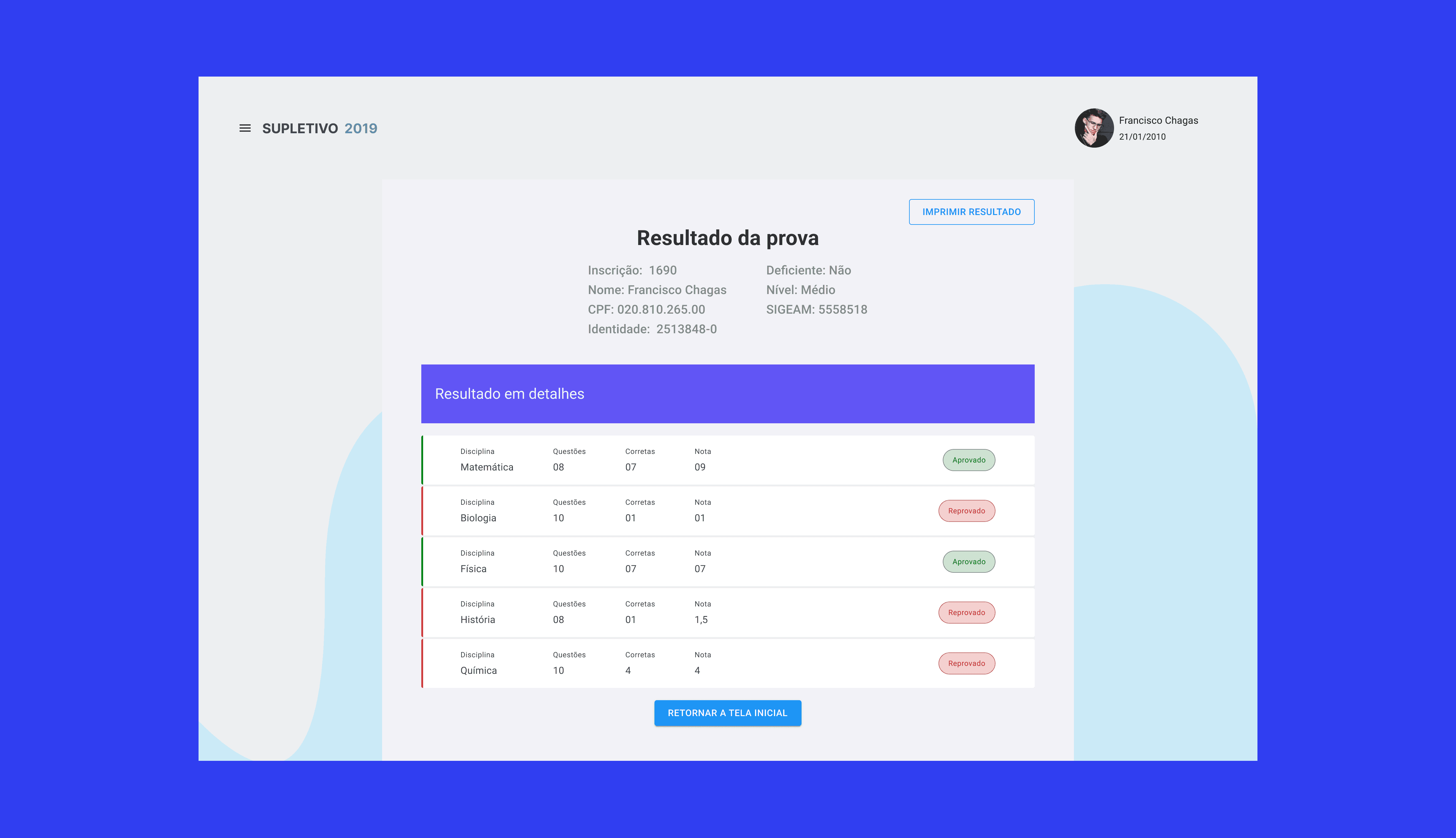 Uma funcionalidade que o cliente exigiu: o administrador da SEDUC podia escolher se exibia resultado, histórico e outras informações de imediato ou não.